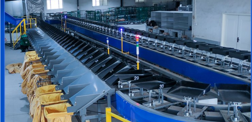 翻盘分拣机具有输送能力强,输送距离远,结构简单易于维护,能方便地实行程序化控制和自动化操作。运用输送带的连续或间歇运动来输送100KG以下的物品或粉状、颗状物品,其运行高速、平稳,噪音低,并可以上下坡传送。
